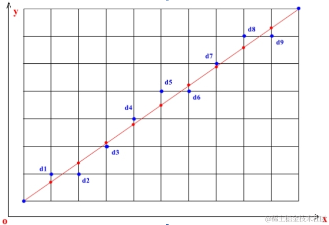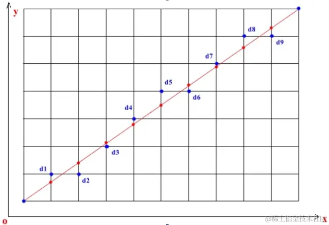 Bresenham's画线算法作图如下: