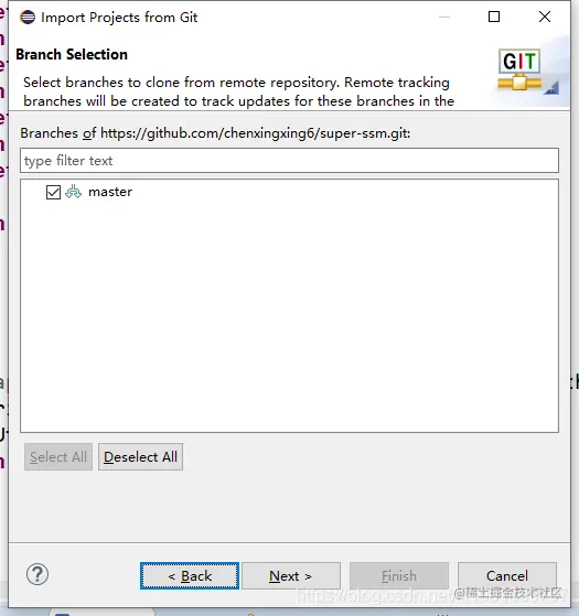 6.选择分支,可以全选,如果有多个分支,Next。