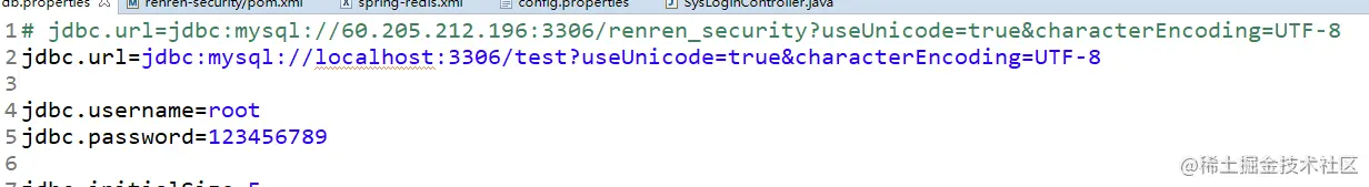 将jdbc.url中的60.205.212.196:3306/renren_security改成你的本机地址(项目地址):端口号/数据库名称