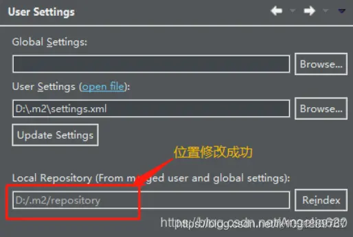 正确修改settings.xml文件中localRepository位置之后的状态(只需要重启Eclipse即可):