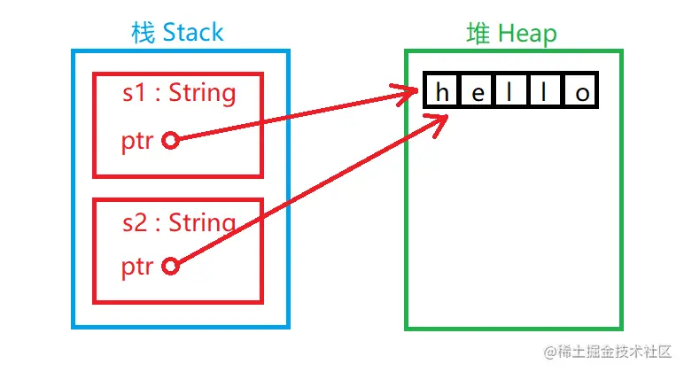 println!("{}", s2); // 错误!因为s1已经转移给s3,原s2引用失效