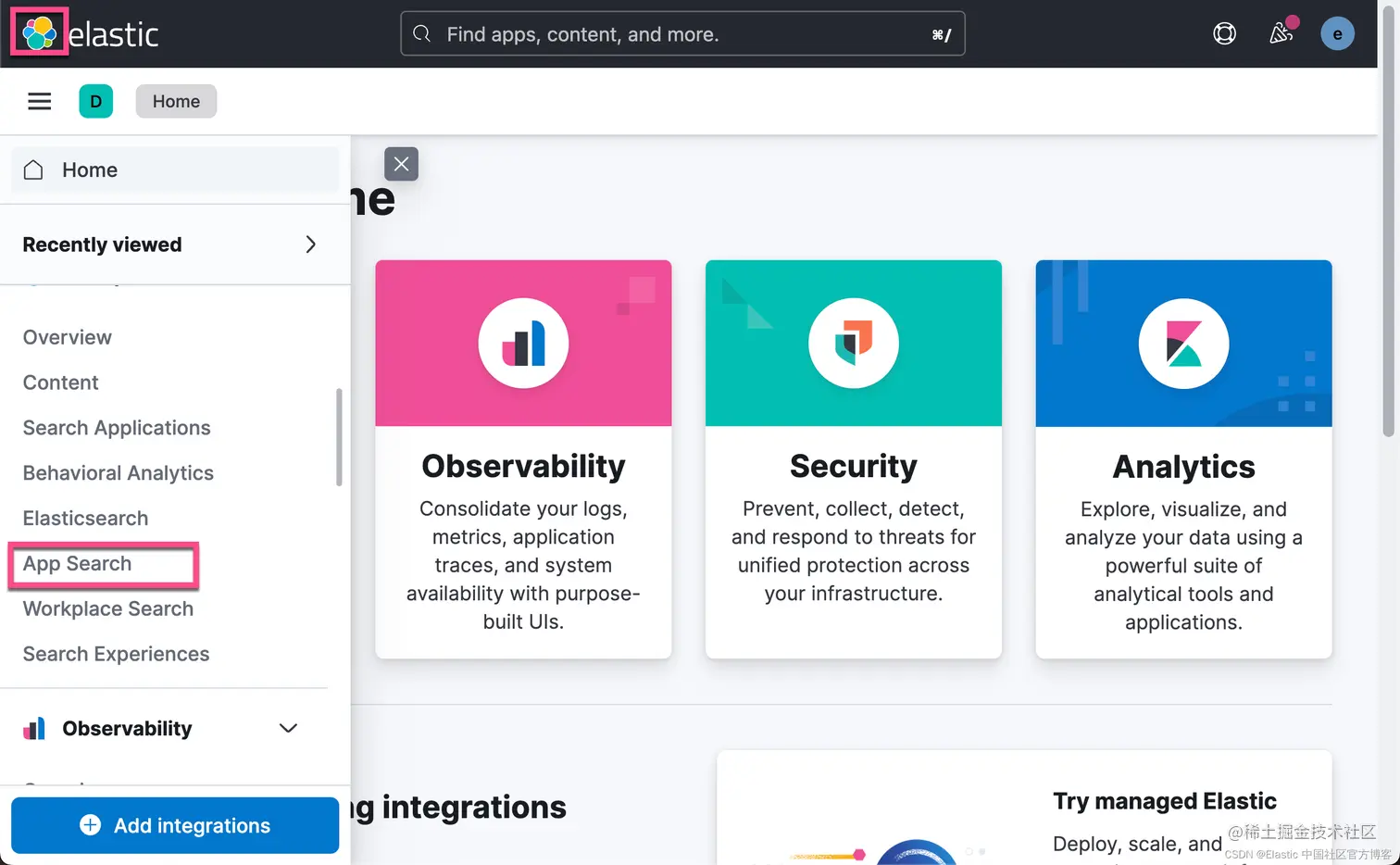App Search 是 Elastic Enterprise Search 的一部分,Elastic Enterprise Search 是由 Elasticsearch 提供支持的内容搜索工具集合。
