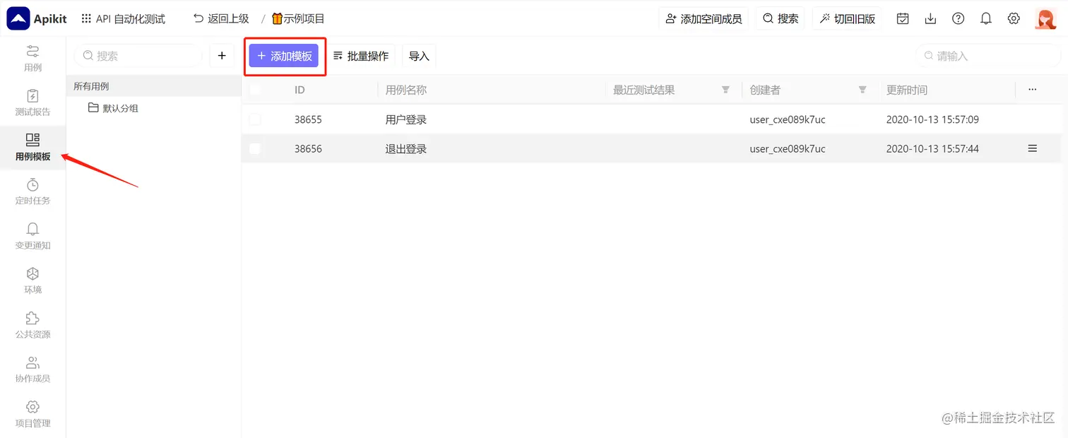 在 APIkit 中,你可以将重复的测试步骤添加到测试模板库中,并且在测试用例中引用测试模板来实现复用测试步骤的目的。如将用户登录、清理数据库等操作作为测试模板,并将该用例引入到多个测试用例中,减少不必要的工作。