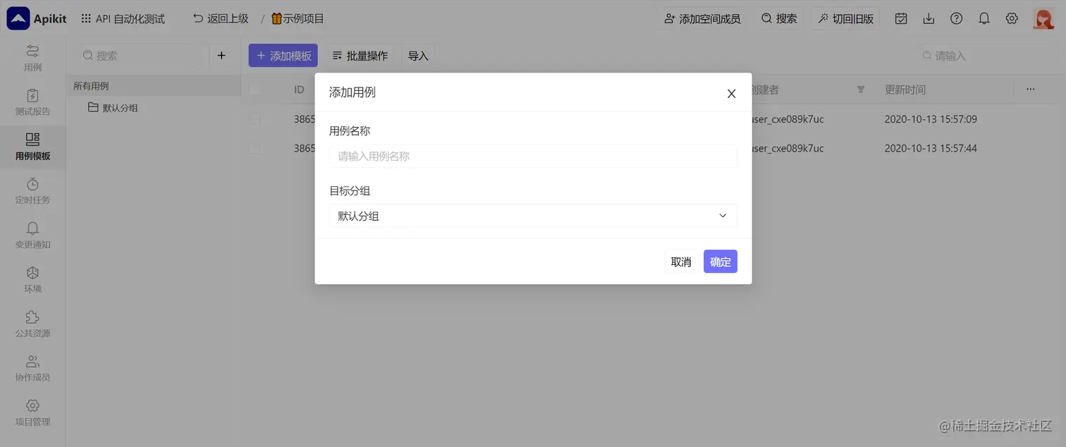 在弹窗中正确填写信息后保存,即可完成新建模板。新建模板后可在模板用例内添加测试步骤,测试模板的编写方法和流程测试用例的一样。