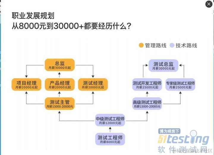 说到测试的职业规划,其实网上分析得比较透彻了,主要就是管理和技术和业务3个方向,以下是3个方向的注释: