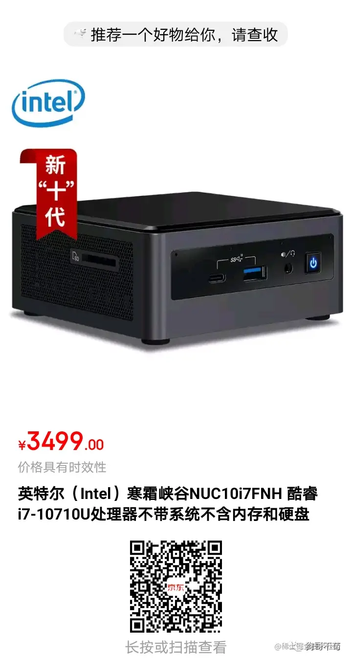若小伙伴对 HP microserver G10 PLUS 感兴趣,还可以看看B站测评:www.bilibili.com/video/BV1rE… - 如果小伙伴对性价比要求较高,可选择 Intel NUC 10 i7FNH 及 华硕 PN62;这两款产品比较适合家用,其中 Intel NUC 10 i7FNH 拥有更灵活的配置搭配能力。