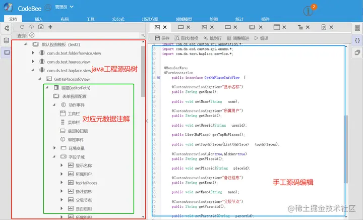 OneCode 元素编辑工具是OneCode领域建模中最为重要的一个工具,OneCode代码工具可以直接读取附有OneCode元数据注解的Java原文件,开发者可以直接手工编辑Java代码。