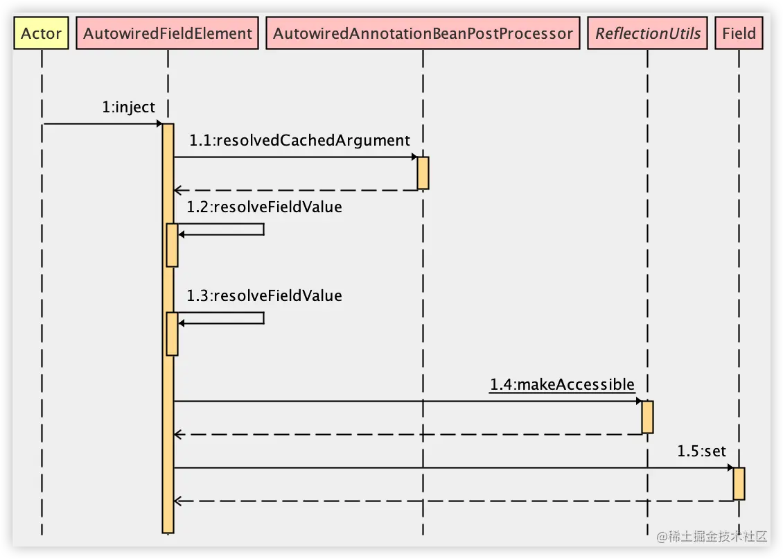 这块的源码分析我就不从头开始分析了,因为整个处理流程前面部分和之前文章 @Autowired 到底是怎么把变量注入进来的?所介绍的内容是一致的,不熟悉的小伙伴建议先阅读 @Autowired 到底是怎么把变量注入进来的?一文。我这里就借用该文的总结,带领小伙伴们稍微回顾一下属性注入的过程:
