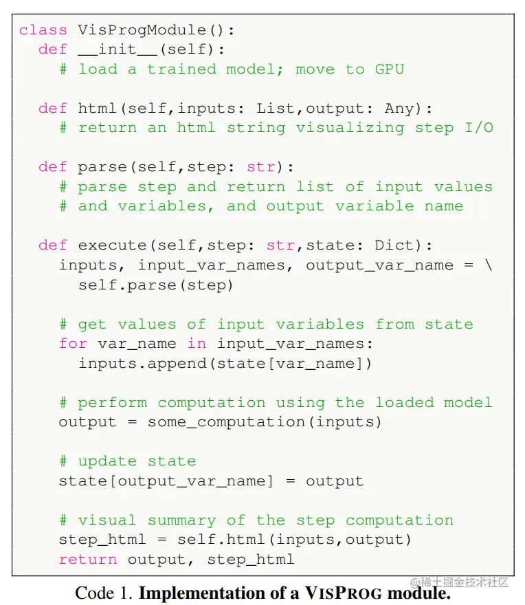在VisProg中, 每个模块都被实现为python代码。