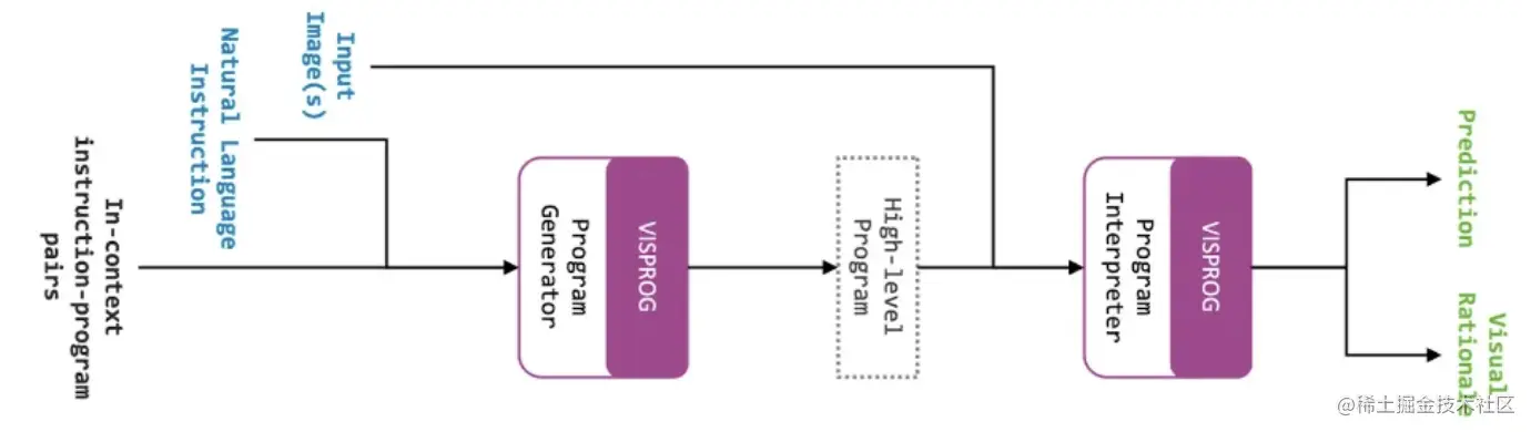 visual programming获得了2023年的best paper, 足以证明其论文质量。但这篇论文比较特殊,在其他模型强调自己模型结构新颖的时候,这篇文章的标题中的without training显得格格不入。