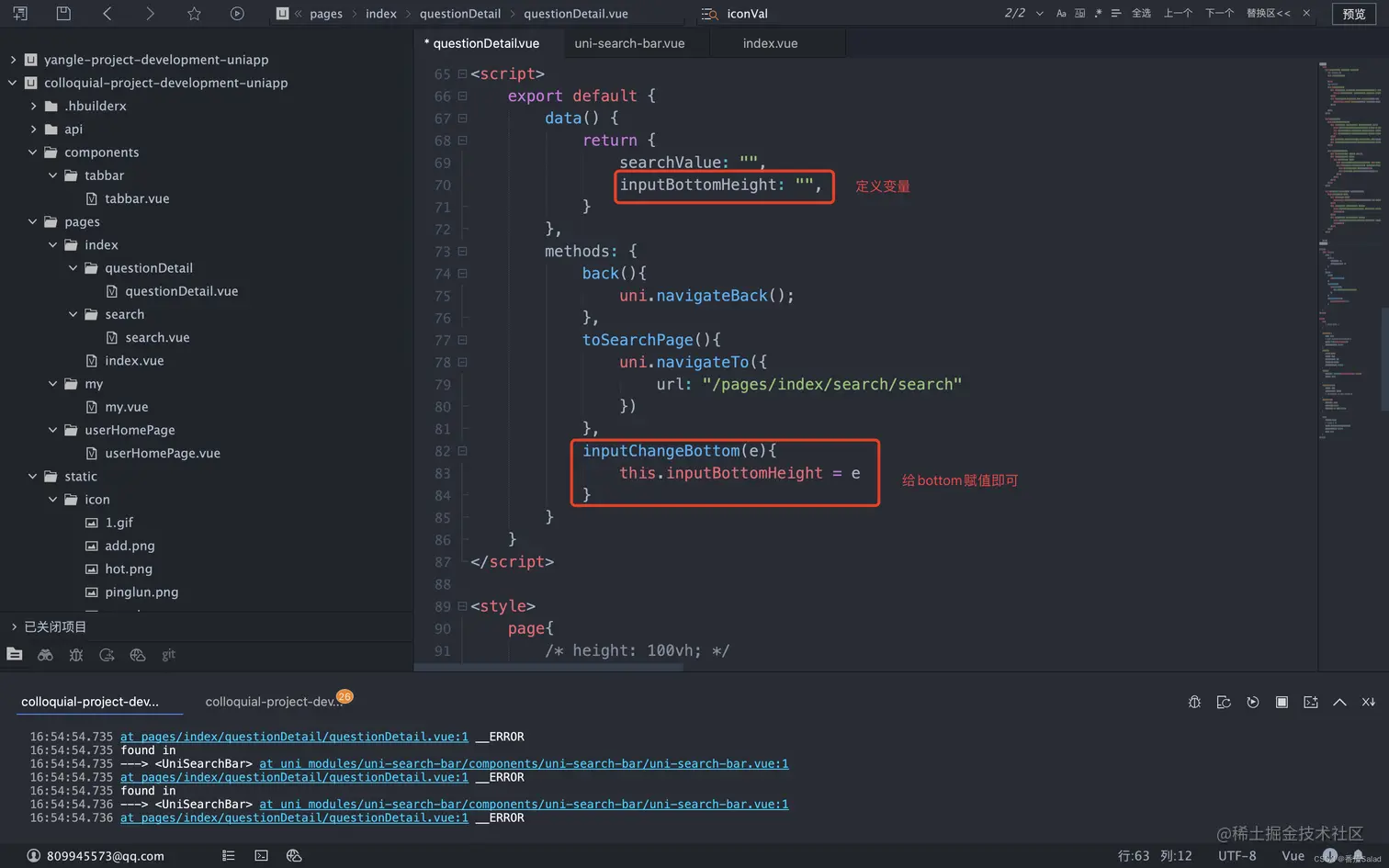 解决:根据聚焦事件@focus和失去焦点事件@blur去操作输入框的bottom。ps:需要设置好输入框为固定定位或绝对定位!