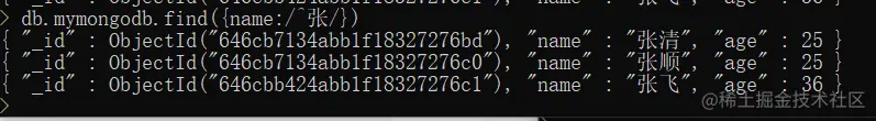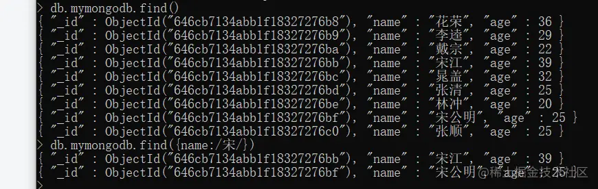 提示:正则表达式是 js 的语法,直接量的写法。 例如,我要查询name包含"宋 " 的所有文档,代码如下: