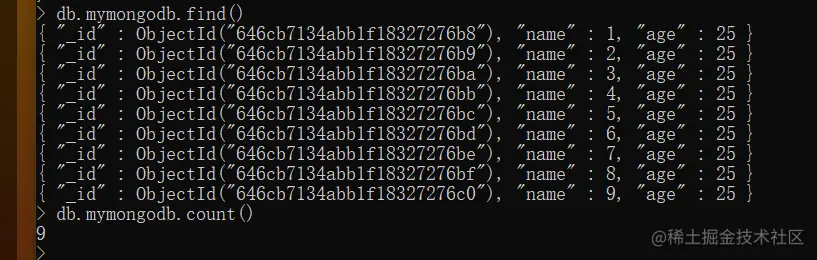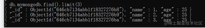 注意:插入时指定了 _id ,则主键就是该值,如果没有指定,则自动生成。