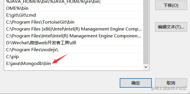 配置环境变量,在Path环境中添加一个mongodb的环境