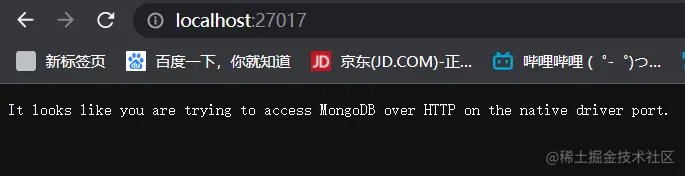 访问localhost:27017,如果出现以下页面,代表安装成功