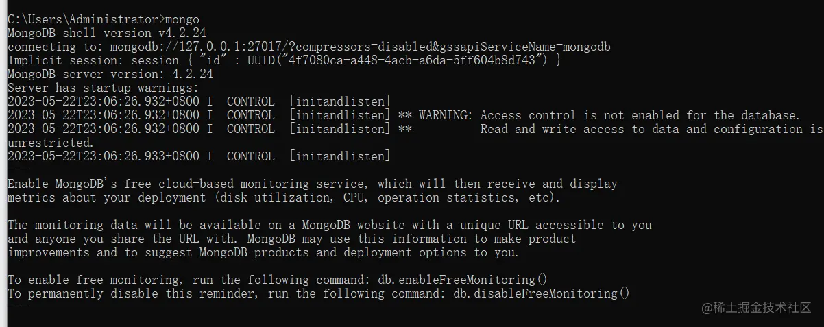会发现每条文档会有一个叫 _id 的字段,这个相当于我们原来关系数据库中表的主键,当你在插入文档记录时没有指定该字段, MongoDB会自动创建,其类型是 ObjectID 类型。