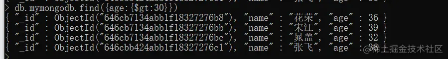 db.集合名称.find({ "field" : { $gt: value }}) // 大于: field > value