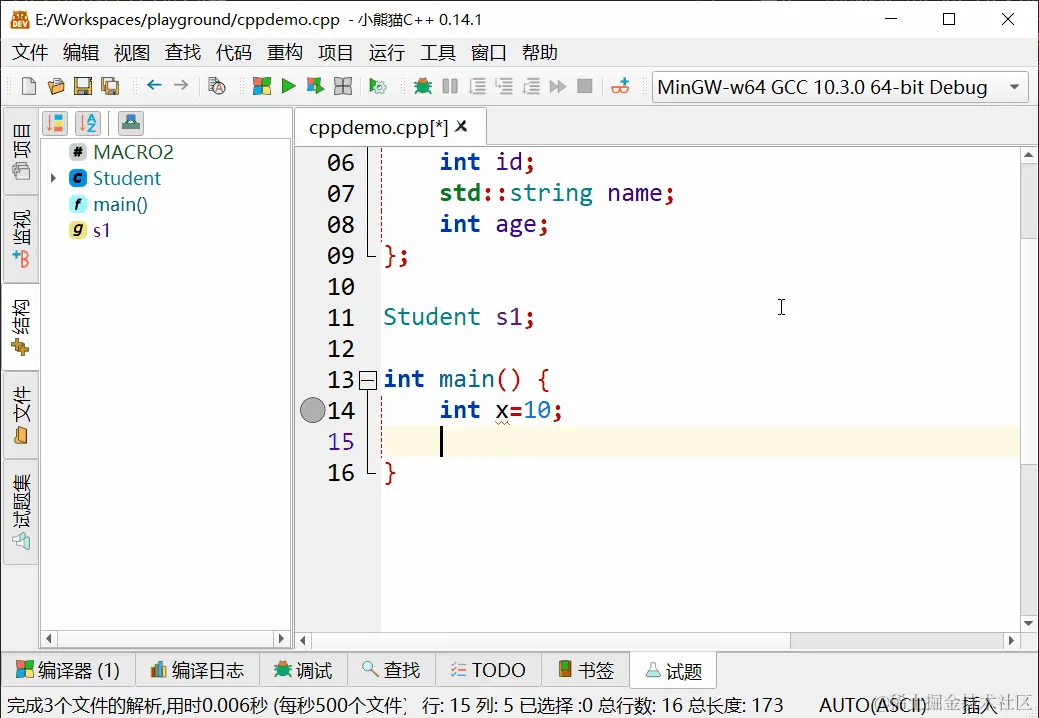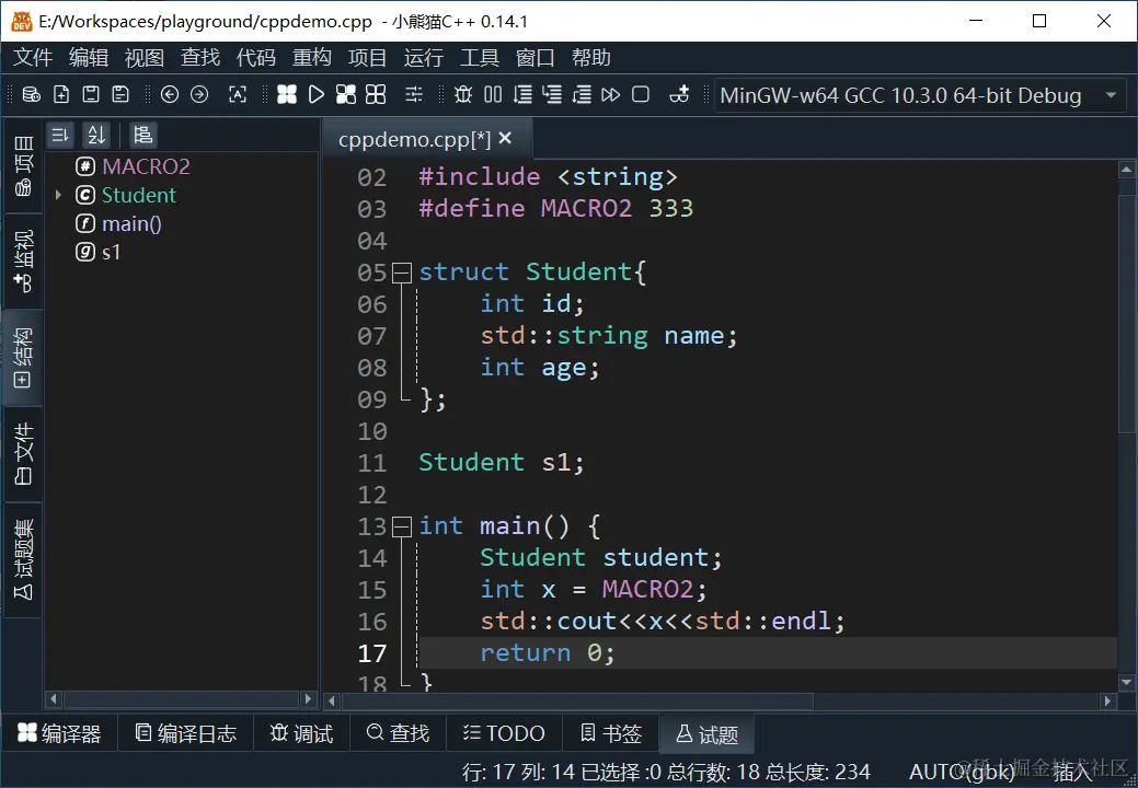安装完毕之后,双击 Windows 桌面上的 Dev-C++ 图标,以启动Dev-C++。工作界面如下图所示。