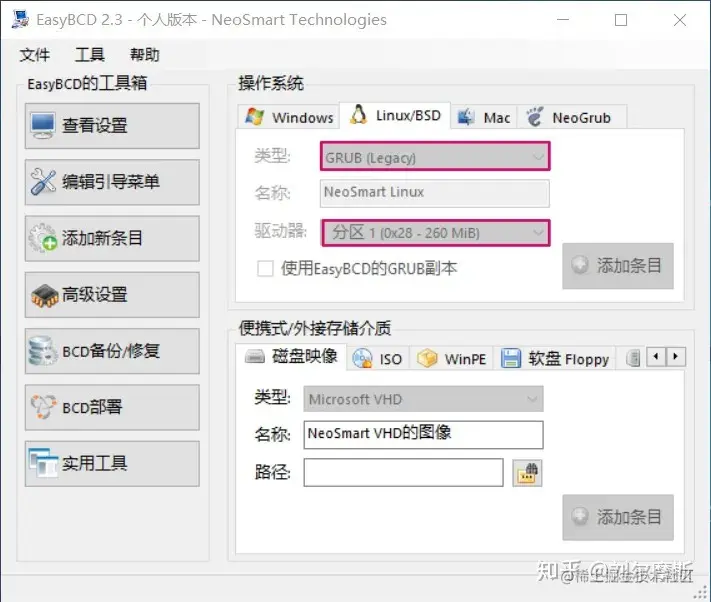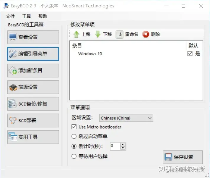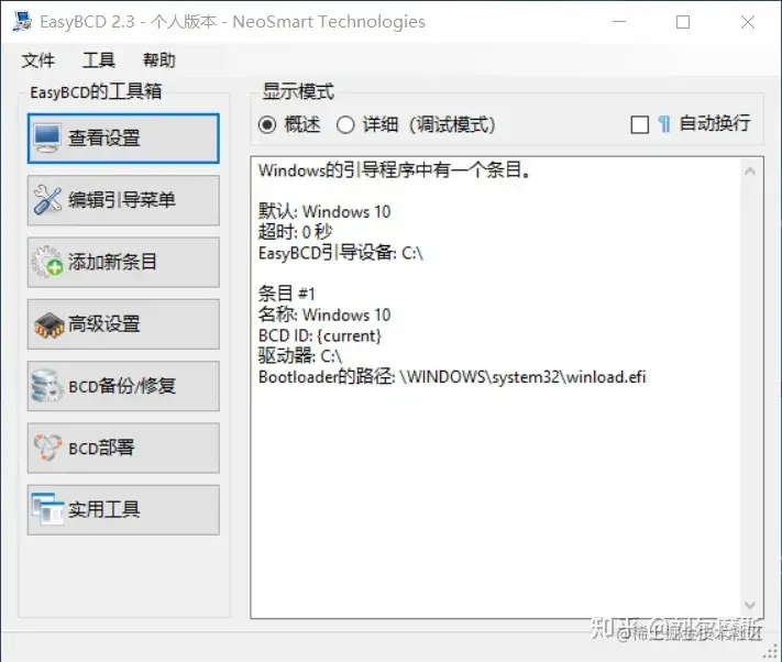 搜索并安装EasyBCD。安装好之后打开界面如下: