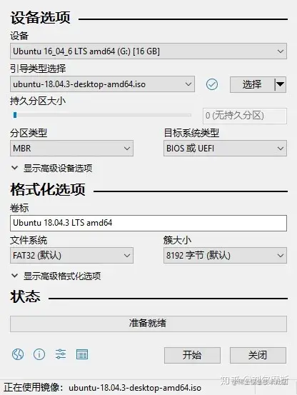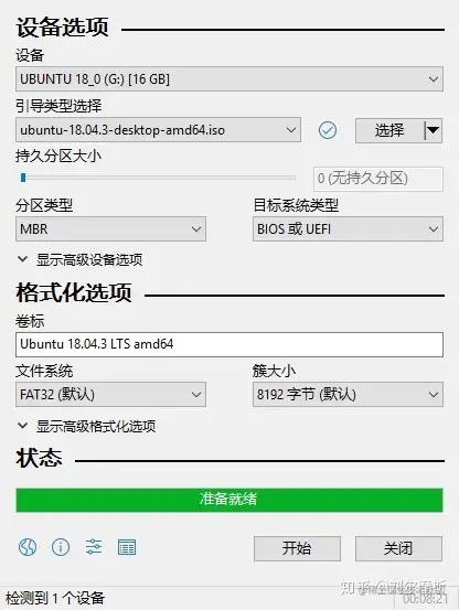3.2. 打开后,插上u盘,在设备一栏选择自己的u盘。引导类型选择自己刚下载的ubuntu文件。其余选项默认即可。