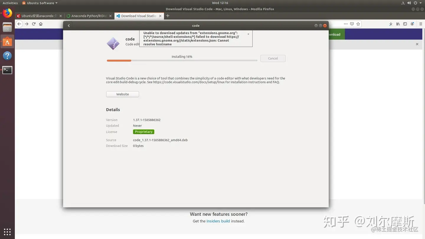 我是在下载conda的时候顺便安装了,先去官网,下载一个linux下的vscode安装包。打开后输入账户密码即可自动安装。