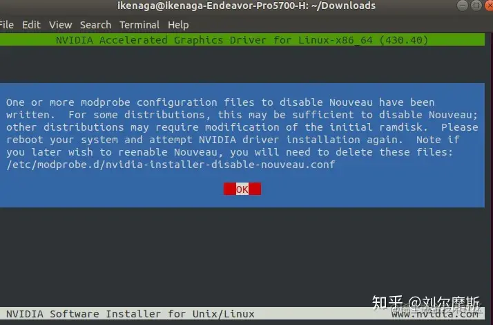 7.4. 首先会为你一个关于pre-install的问题,忽略即可。之后会提到Nouveau没有关闭,继续选择它将为你创建一个目录(总之理解为它为你关闭Nouveau)点确定。之后重启。
