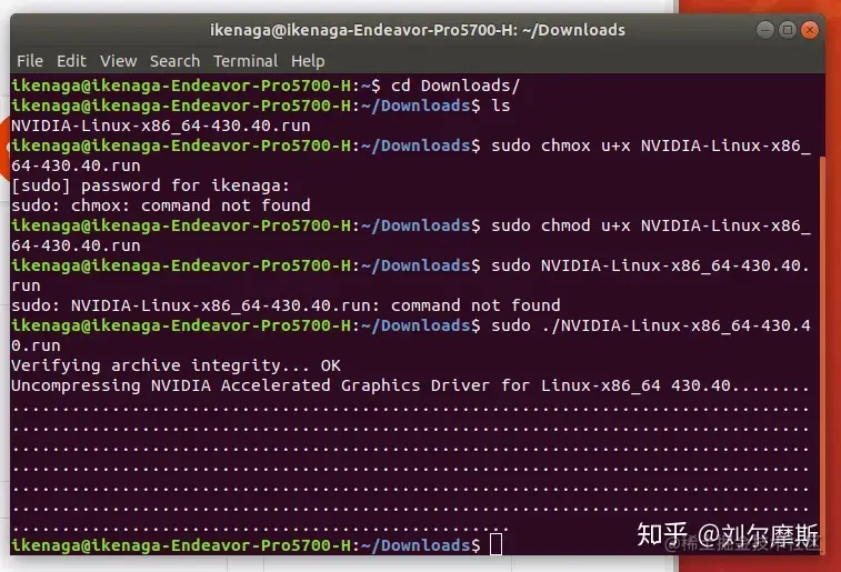 7.5. 重启之后分辨率变低了,再次打开终端,执行安装显卡驱动的命令。中间有一个是否重写lib,我选的是。是否x选否。之后安装完成,重启。