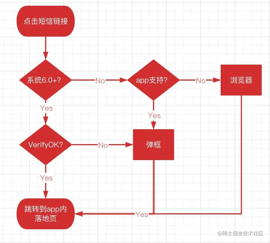 短信的消息触达能力是毋庸置疑的,虽然短信文本中直接放入的链接我们也可以打开,但是确存在一些局限性,这种方式仅支持打开web页面,无法跳转到APP原生页面,另外点击链接会先弹窗,由用户选择打开链接的app,这种体验相比直接打开APP指定页面来说大打折扣。因此,如何通过短信直接到达APP内