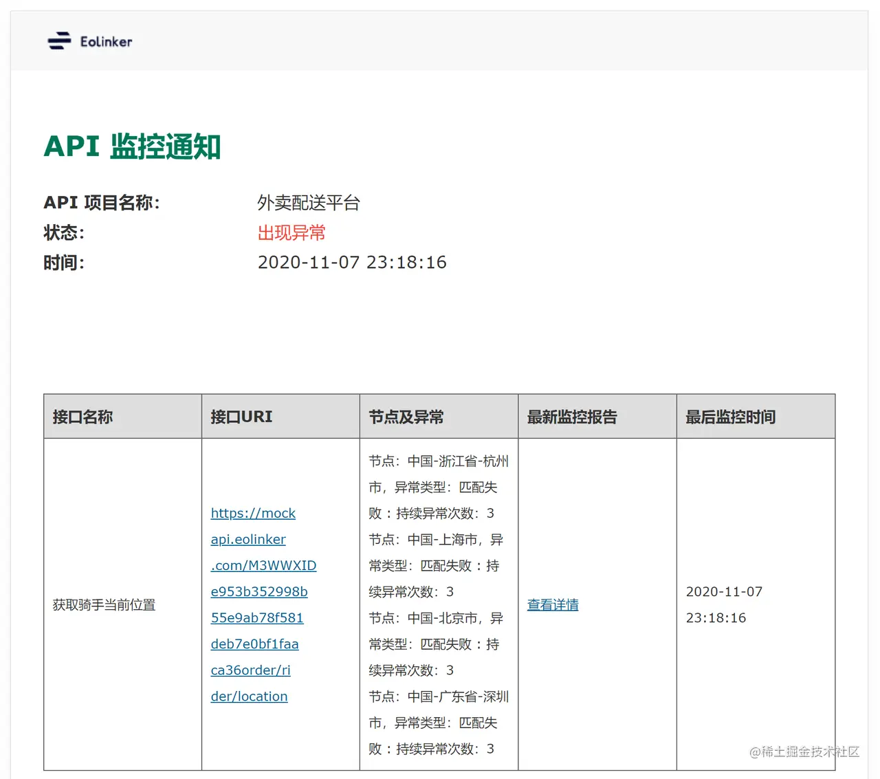 系统会将异常API通过邮件的方式通知到相应的运维人员。