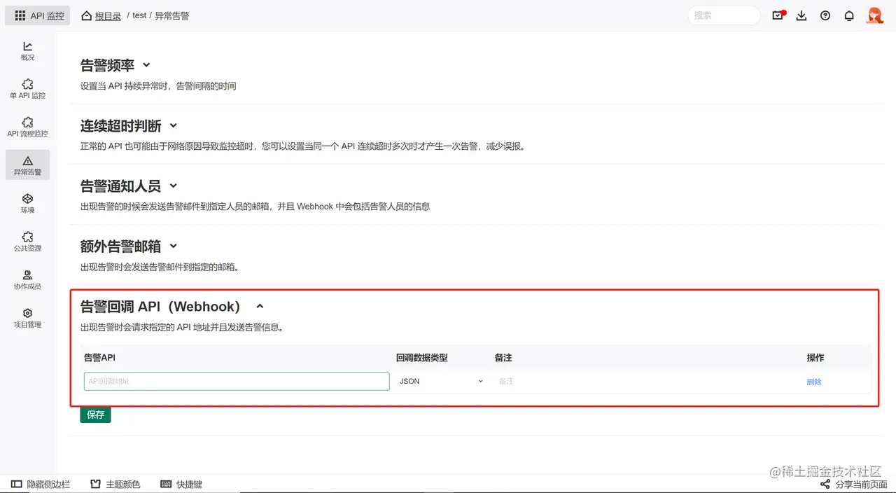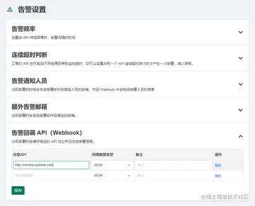 在告警回调 API 内填入相应的 Webhook 地址: