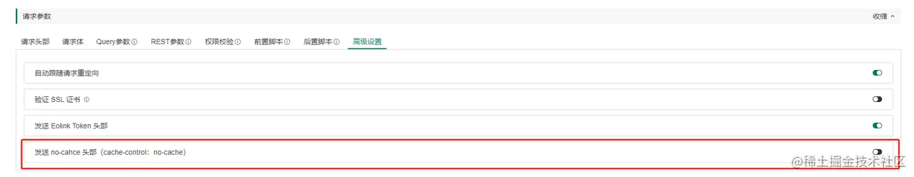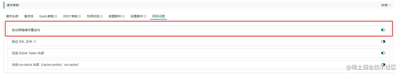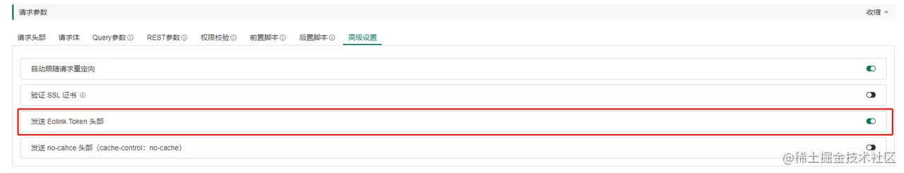 可以设置是否发送Eolinker Token头部,Eolinker Token用于标识请求发送自Eolinker平台
