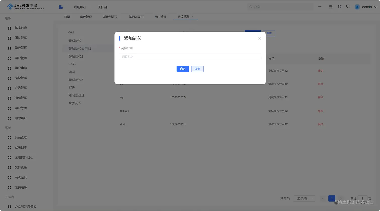 JVS基础框架岗位管理