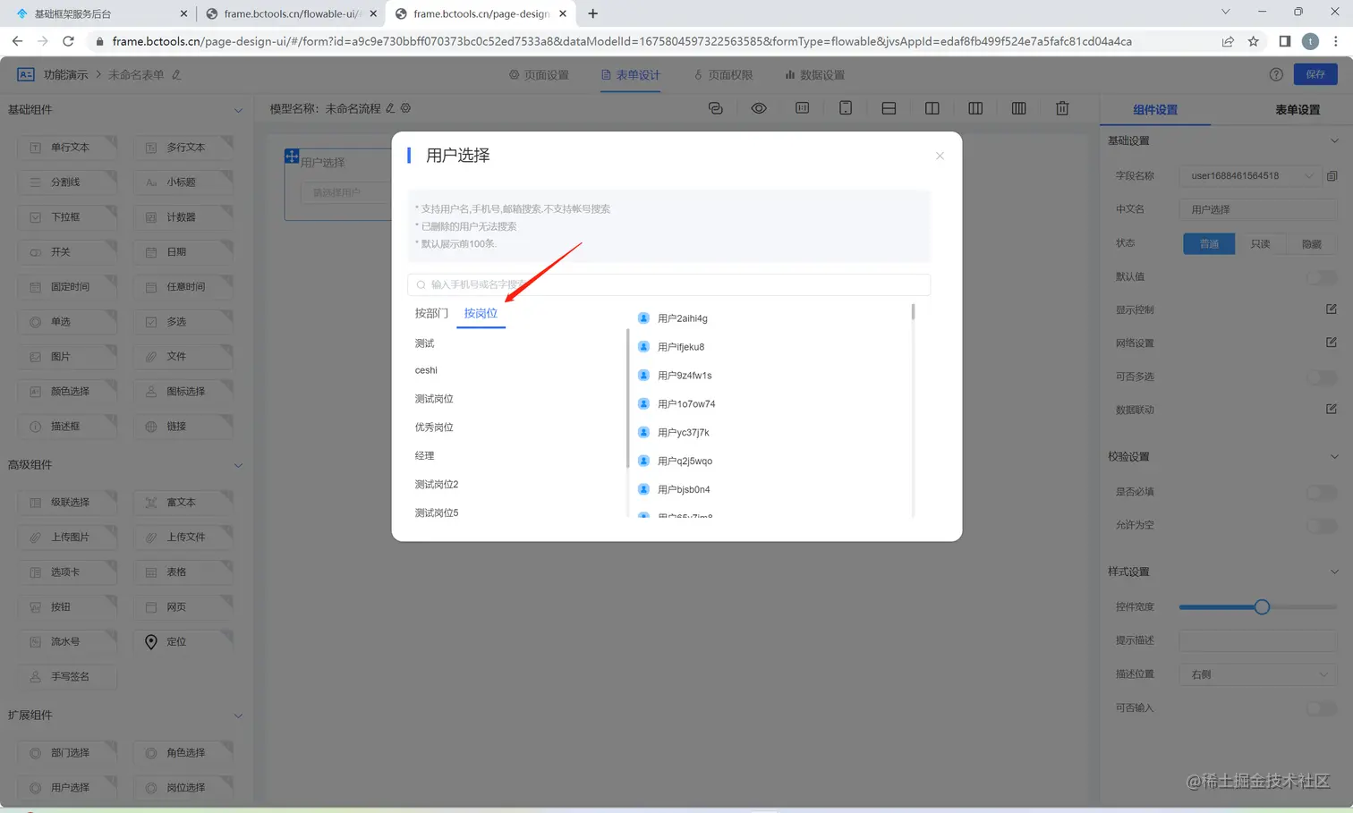 在用户选择器中,可以按照岗位选择对应人群