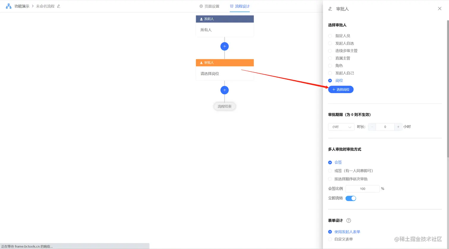 岗位是角色、组织之外的可以描述用户属性的维度,例如在流程审批节点时,通过岗位选择用户,