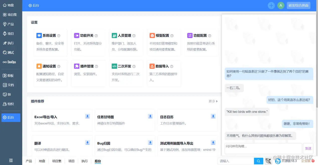 禅道推出OpenAI插件,将ChatGPT集成到禅道软件,成为全新的链接AI与工具的入口。让使用禅道的小伙伴们,也能实时体验到AI为工作带来的便捷高效!用全新的体验让项目管理工具变成一场神奇的智能对碰,收获更多的可能。