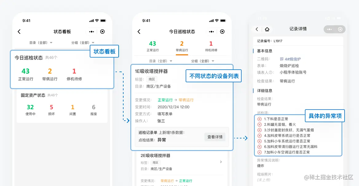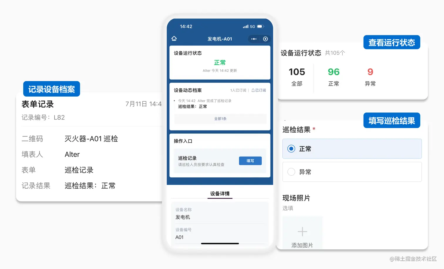 本教程适用于设备数量多、巡检频率高的场景,比如物业巡逻巡更、配电箱巡检、灭火器巡检等,可以快速记录设备状态,管理人员在手机上就能查看设备运行状态。一次巡检操作可以在几秒钟内完成,不给一线人员增加工作负担。