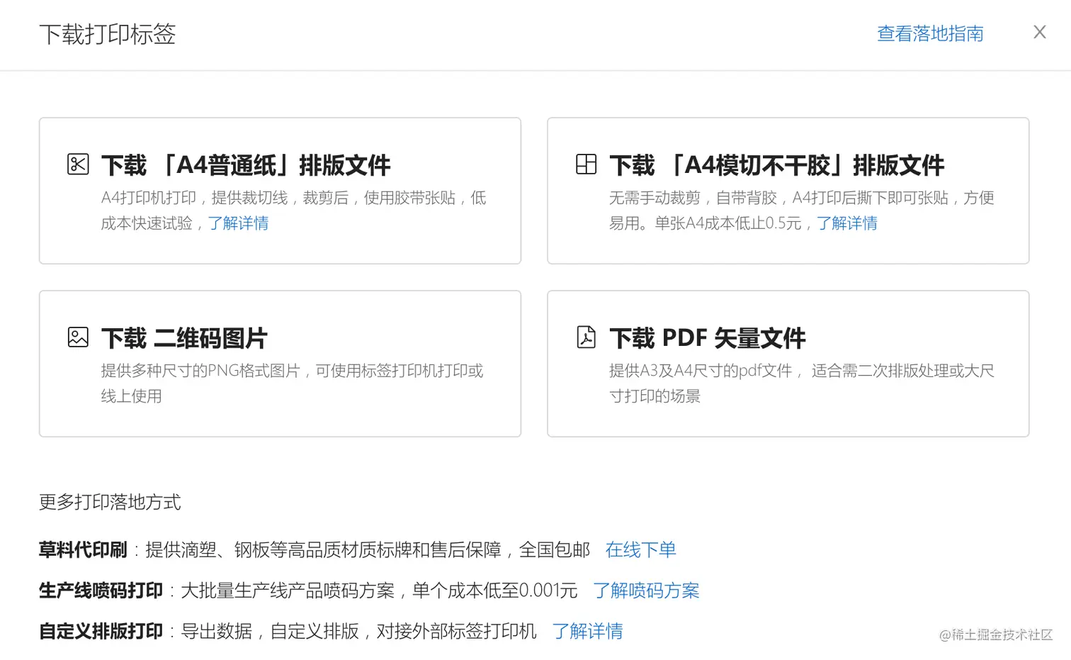 可以选择多种打印方式,包括A4纸打印、模切不干胶等,也可以下载保存矢量文件,交由印刷店制作成亚银不干胶或PVC硬卡材质。户外设备、巡检点使用环境较差,日晒雨淋,推荐使用铝板、不锈钢材质,防腐蚀耐用。