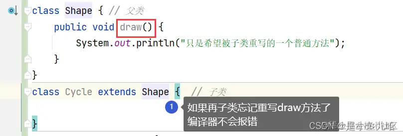 public abstract void draw(); // 抽象方法不能里有具体的语句