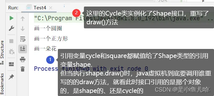 就看此时接口引用的是那个对象的,是shape的、还是cycle的