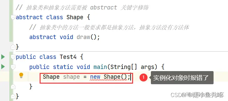 //Shape shape = new Shape(); 抽象类虽然不能直接实例化