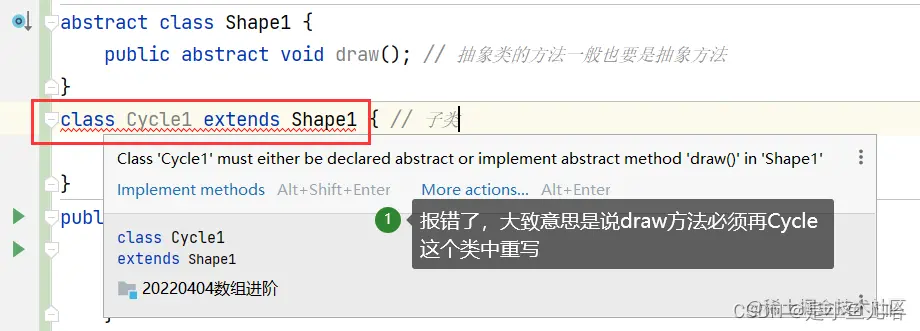 // 当一个普通类继承一个抽象类的时候,再这个子类中必须重写抽象类中的抽象方法