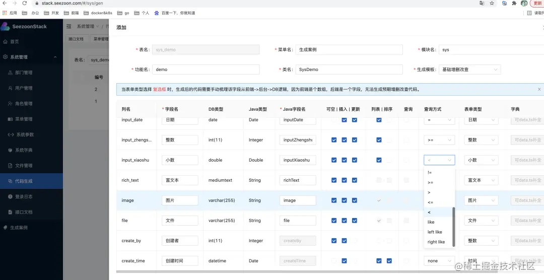 Seezoon Stack 是一款基于当前最前沿的前端(Vue3 + Vite + Antdv)和后台(Spring boot)实现的低代码开发平台。以快速开发为目的,在开发速度和代码结构上做出一定取舍。项目采用主流开发框架,无论打包、编译、部署都按着大公司的标准完成并不断逐步完善。