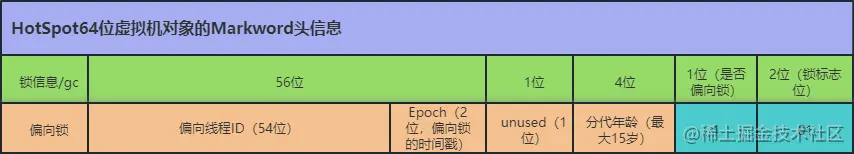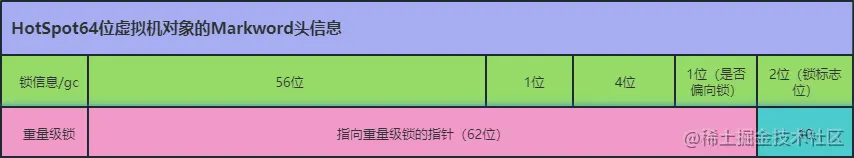前一篇文章写了java对象的内存布局,里面有一个关于对象头Markword存储的内容表格,在synchronized锁的使用过程中就用到了,如下图所示。