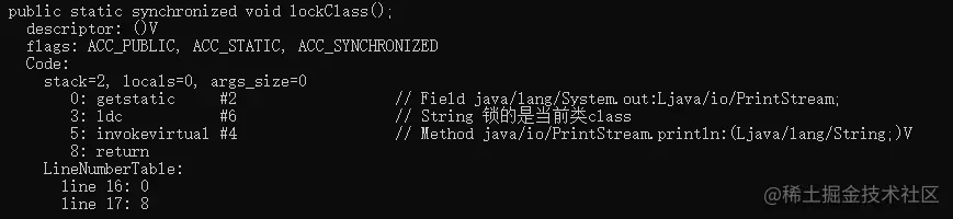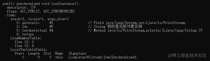 javap -c -v -l Synchronized1.class