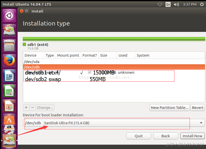 然后最下面的device for boot loader一定是要选择为U盘的。