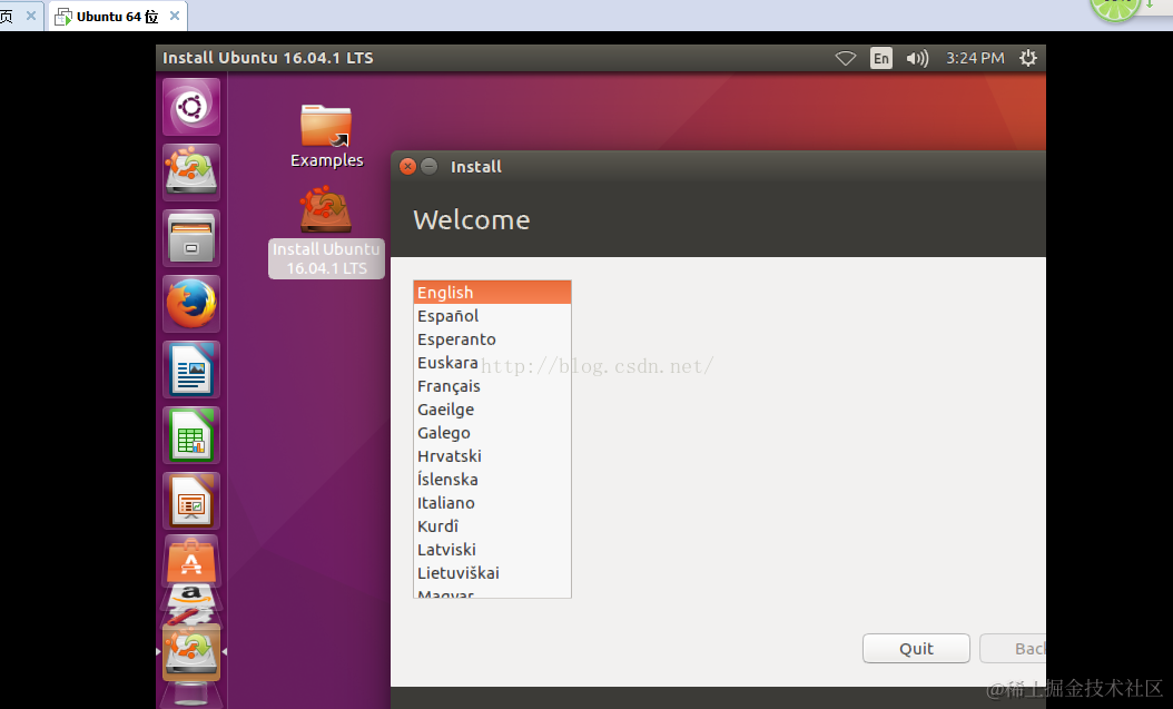 点击桌面左上角的install ubuntu,然后会进入到安装程序。
