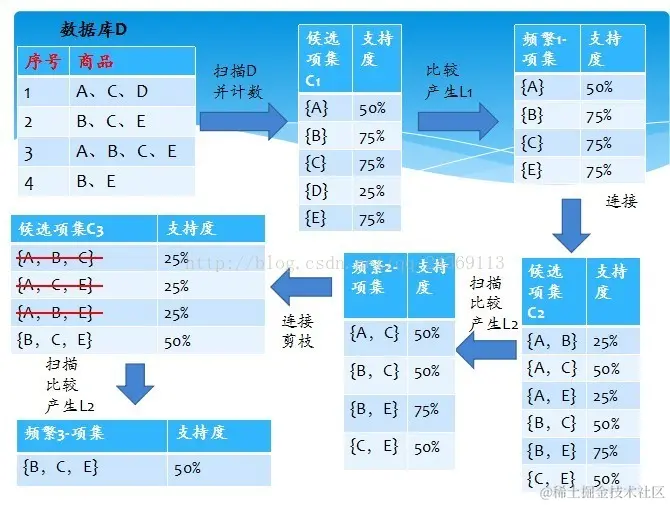 简单的讲,利用Apriori算法挖掘关联规则步骤如下: