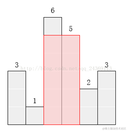 请找出能放在给定直方图里面积最大的矩形,它的边要与坐标轴 平行。对于上面给出的例子,最大矩形如下图所示的阴影部分,面积