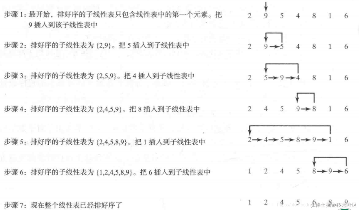 (4)从不是空的桶子里把项目再放回原来的序列中。