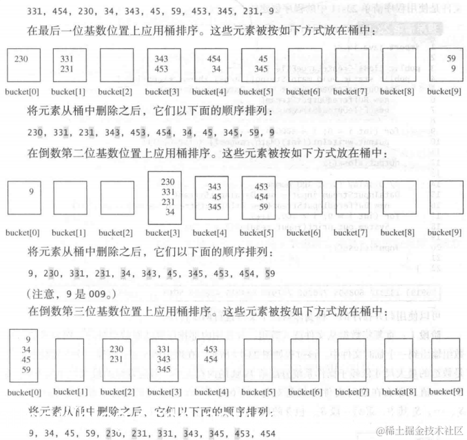 (2)寻访序列,并且把项目一个一个放到对应的桶子去。